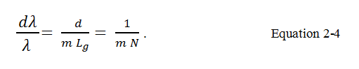 其中 ,N是在衍射光柵溝槽的總數。 這與變換極限理論其中指出 任何最小可分辨單元變換成反比的樣本數一致。 通常,光柵的分辨能力比分光計的整體解析力高得多,表明分散體是唯一的許多因素之一確定總光譜分辨率。