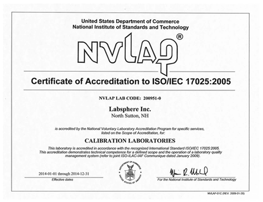 圖3、Labsphere獲得NVLAP認證