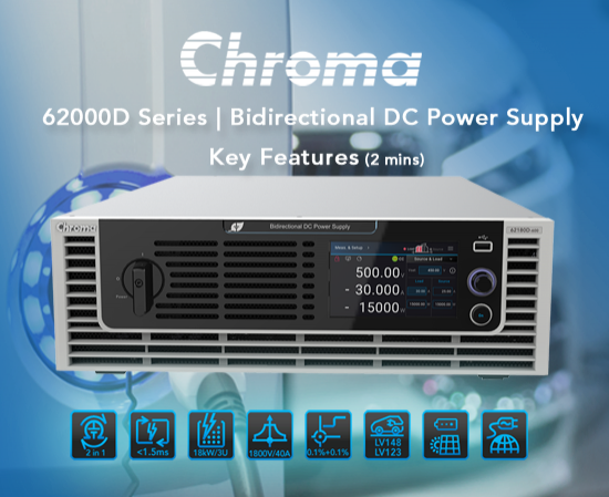 Chroma 62000D系列雙向可程控直流電源供應(yīng)器兼具電源及負(fù)載特性,雙象限操作,可允許待測(cè)物的能量饋入此電源,適用于新能源之儲(chǔ)能系統(tǒng)測(cè)試,如光伏/儲(chǔ)能混合式逆變器、電池儲(chǔ)能變流器(PCS)等測(cè)試于模擬儲(chǔ)能電池之充電與放電轉(zhuǎn)換。62000D也適用新能源車應(yīng)用之雙向車載充電器(BOBC)、雙向直流轉(zhuǎn)換器、DC-AC馬達(dá)驅(qū)動(dòng)器等電源管理系統(tǒng),借以取代電池達(dá)到雙向的電源轉(zhuǎn)換模擬測(cè)試。